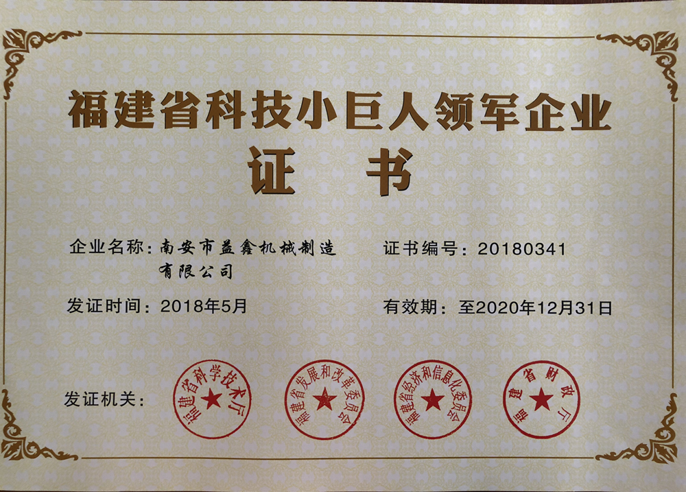 2018福建省科技小巨人領(lǐng)軍企業(yè)名單出爐,益鑫磚機(jī)上榜